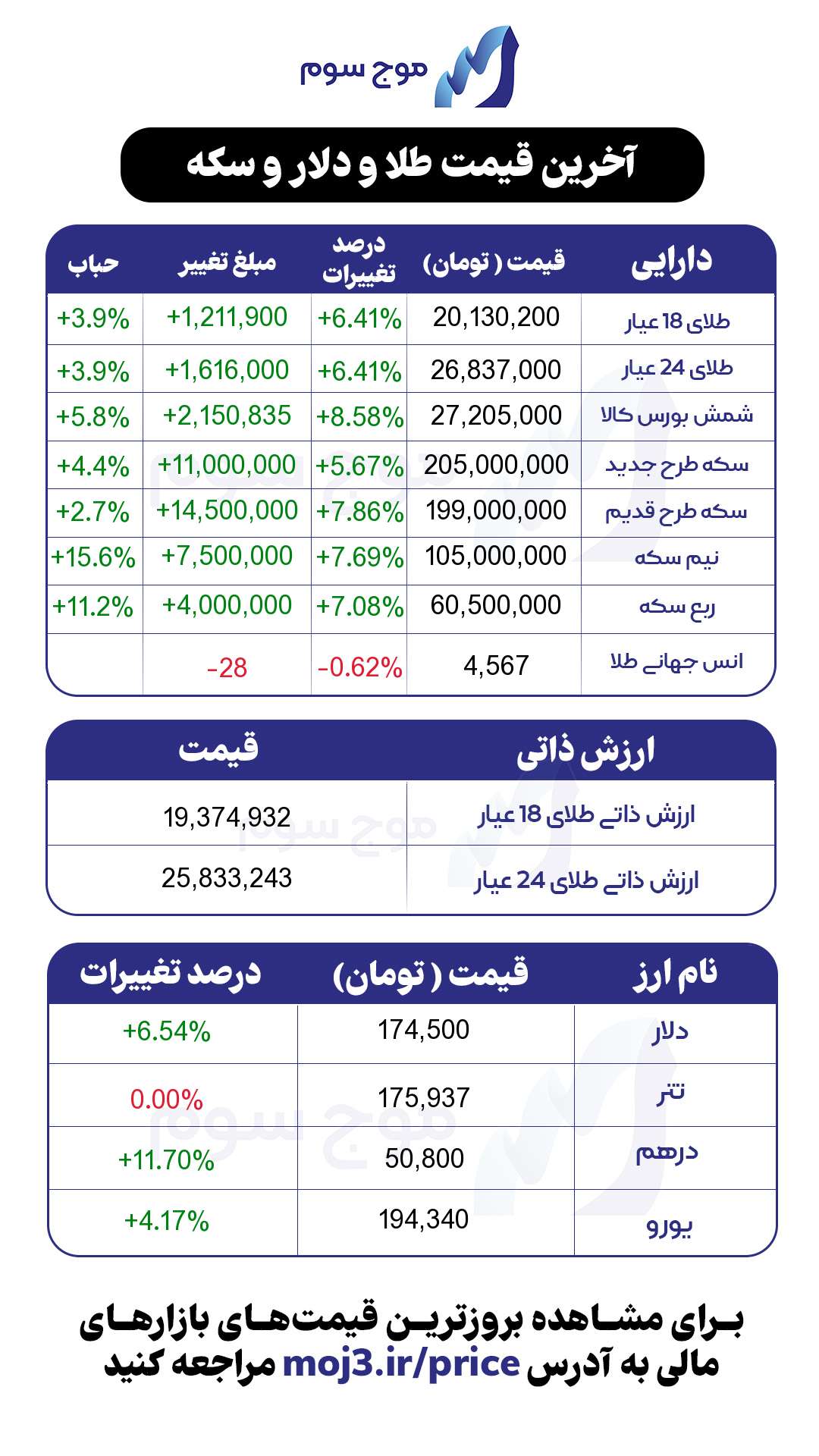 تصاویر زیر قیمت لحظهای دارایی ها را نمایش میدهد و میتوانید تصاویر را دانلود و استفاده کنید.